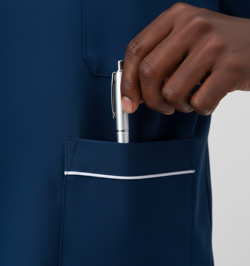 La Marinière Médicale avec tissus importé (Tissus STretch extensible et flexible) est spécialement conçue pour les professionnels de santé qui recherchent confort, praticité et hygiène au quotidien. Que vous soyez médecin, infirmier, laborantin ou étudiant en médecine, cette marinière vous accompagne pendant vos longues journées de travail tout en respectant les normes sanitaires.